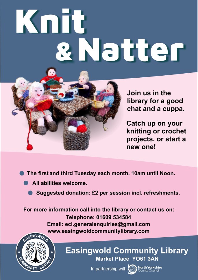 Our Knit & Natter group, run by our lovely volunteers, meets on the first and third Tuesday of each month from 10am until Noon.